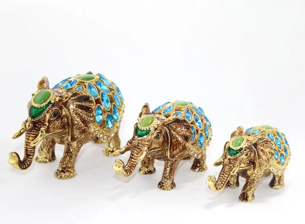 SWAROVSKİ TAŞLI 3'LÜ FİL FİGÜRÜ MODEL 2Ürün ÖzellikleriDekoratif 3e grup Taşlı 3’lü Fil Figürü, estetik ve zarif tasarımıyla ev ve ofis dekorasyonuna şıklık katıyor. Altın kaplama detayları ve 3e grup taş süslemeleri ile göz kamaştıran bu üçlü set, şans ve bereketin sembolü olarak bilinen filler ile anlamlı bir hediye alternatifi sunar. 9x8x7 cm boyutlarındaki bu özel tasarım, üç farklı boyutta ve uyumlu bir şekilde dizilmiş fil figürlerinden oluşmaktadır.Paket İçeriği1 Adet 3e grup Taşlı 3’lü Fil Figürü Seti Model 2