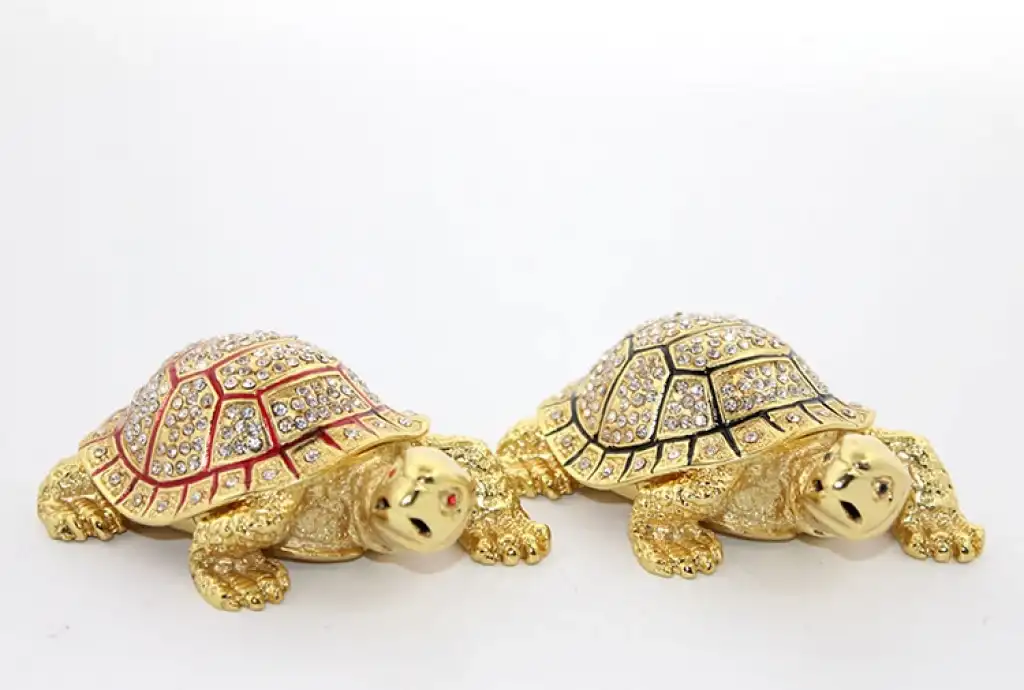 SWAROVSKİ TAŞLI KAPLUMBAĞA FİGÜRÜ MODEL 1Ürün Özellikleri3e grup taşlarıyla süslenmiş kaplumbağa figürü, 10x7 cm boyutundadır. Altın renkli detayları ve parlak 3e grup taşları ile zarif bir görünüm sunar. Hem dekoratif bir obje olarak hem de koleksiyonluk bir figür olarak kullanılabilir. Şıklığı ve zarafetiyle, özellikle ev dekorasyonuna veya hediye olarak mükemmel bir seçimdir. Bu figür, aynı zamanda doğa ve hayvan figürlerine ilgi duyanlar için eşsiz bir hediye alternatifi sunar.Paket İçeriği1 Adet 3e grup Taşlı Kaplumbağa Figürü Model 1