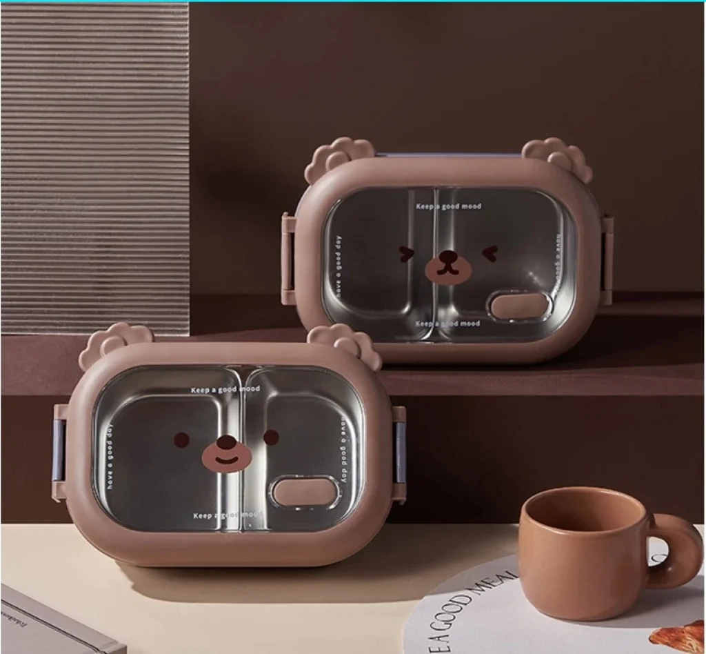 Bölmeli Sevimli Hayvan Tasarımlı Paslanmaz Çelik Yemek KutusuGörselde, sevimli bir hayvan yüzü tasarımıyla öne çıkan, bölmeli paslanmaz çelik yemek kutuları bulunuyor. Bu tür ürünler, çocuklar için özellikle çekici ve pratik öğle yemeği saklama çözümleri sunar.Ürün Açıklaması:Bu sevimli hayvan tasarımlı paslanmaz çelik yemek kutusu, çocukların öğle yemeklerini güvenle taşıması ve tüketmesi için mükemmel bir seçimdir. İçerisindeki iki ayrı bölme sayesinde farklı yiyecekleri bir arada tutmanıza olanak tanır. 304 kalite paslanmaz çelikten üretilmiştir ve sağlıklı bir yemek saklama deneyimi sunar. Sızdırmaz kapağı sayesinde yiyeceklerinizin dökülmesini önler ve çocuğunuzun çantasında güvenle taşınabilir. Şirin hayvan yüzü tasarımı ile çocukların favorisi olacak bu yemek kutusu, hem pratik hem de eğlencelidir.Paket İçeriği:1 Adet Bölmeli Sevimli Hayvan Tasarımlı Paslanmaz Çelik Yemek Kutusu