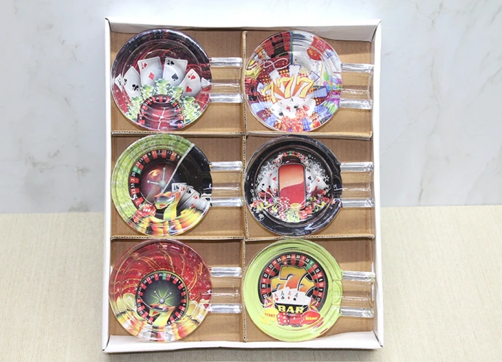 CAM PURO KÜLLÜK MODEL 3Ürün ÖzellikleriCam Puro Küllük Model 3, şans oyunları temalı renkli baskı tasarımıyla şık bir görünüm sunar. Dayanıklı cam malzemeden üretilmiştir, uzun ömürlüdür ve puro severler için fonksiyonel bir dekoratif objedir. Şans oyunları motifleriyle süslenmiş bu küllük, estetik bir dokunuş ekler ve her türlü masa veya sehpa için mükemmeldir.Paket İçeriği1 Adet Cam Puro Küllük Model 3