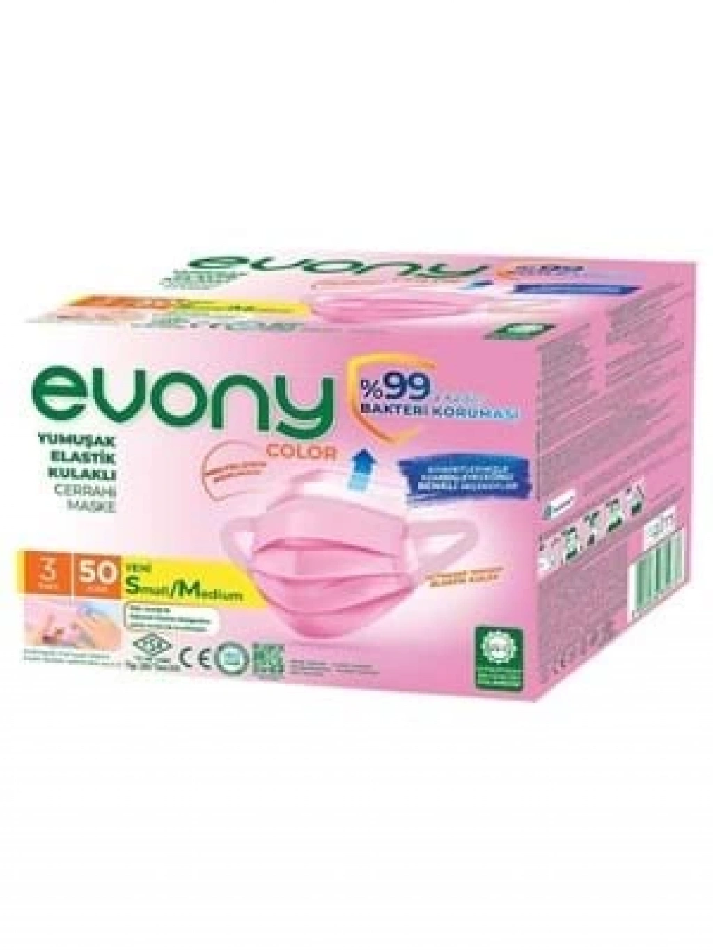 3E Grup - Evony 3 Katlı Telli Yumuşak Elastik Kulaklı Maske 50'li Pembe 819737