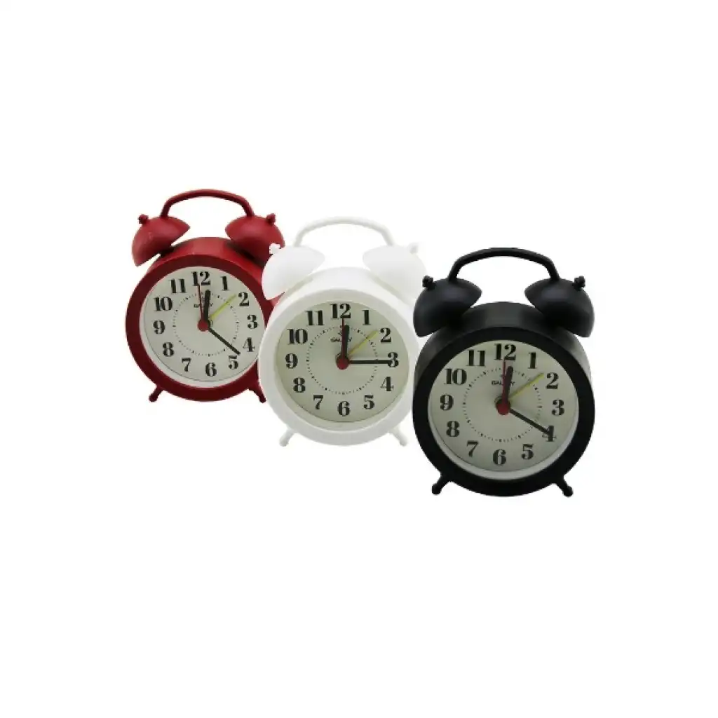 GALAXY KLASİK MASA ÇALAR SAATİÜrün ÖzellikleriGalaxy Klasik Masa Çalar Saati, geleneksel ikiz çan tasarımını modern teknolojiyle birleştirerek huzurlu bir uyku ve zamanında uyanma deneyimi sunuyor. 8.5 cm boyutundaki kompakt tasarımıyla komodinlerinizin vazgeçilmezi olacak bu masa saati, "sessiz akar saniye" mekanizması sayesinde çalışma sırasında tık-tık sesi çıkarmaz; böylece en sessiz ortamlarda bile konforunuzu bozmaz. Renkli plastik kasası, nostaljik "kulaklı" model estetiğini canlı bir görünümle tamamlar. Okunaklı büyük rakamları ve kontrast renkli akrep-yelkovanı ile zaman takibi oldukça kolaydır. Güçlü alarm fonksiyonu ile güne güvenle başlamanızı sağlayan bu sessiz akar saat, pil ile çalışması sayesinde elektrik kesintilerinden etkilenmez ve her yerde kullanılabilir. Hem çocuk odalarında sevimli bir detay hem de yatak odalarında fonksiyonel bir yardımcı olarak kullanabileceğiniz bu klasik çalar saat, şık tasarımıyla dekorasyonunuzu tamamlar. Sessiz çalışma prensibi ve ikonik görünümüyle, kaliteli bir uyku ortamı arayanlar için ideal bir ev gereci çözümüdür.Ürün Teknik ÖzellikleriÖzellikAçıklamaÜrün AdıGalaxy Klasik Masa Çalar SaatiBoyut8.5 cmMekanizmaSessiz Akar Saniye (Gürültüsüz Çalışma)TasarımKlasik Kulaklı (İkiz Çan) ModelMalzemeDayanıklı Renkli Plastik KasaGüç KaynağıPilli (Standart pil ile çalışır)Renk SeçeneğiGörseldeki renklerden biri 3e grup gönderilir, renk seçimi yapılamazPaket İçeriği1 Adet Galaxy Klasik Masa Çalar Saati