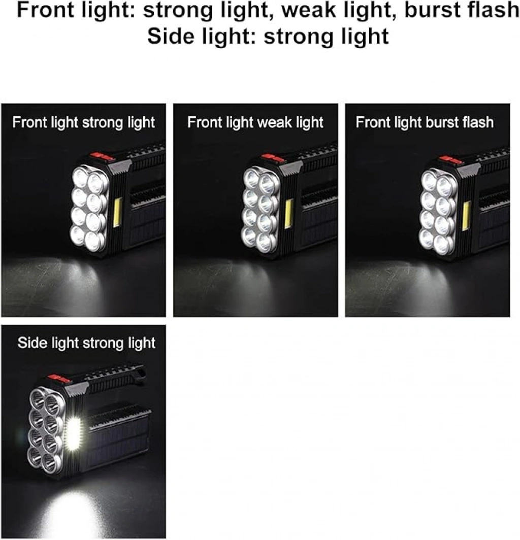 GÜNEŞ ENERJİLİ KAMP AV FENERİ“Doğadan Gelen Işıkla Maceralarınızı Aydınlatın!”Güneş Enerjili Kamp Av Feneri, doğa aktivitelerinizde ve açık hava maceralarınızda ihtiyacınız olan çok yönlü bir aydınlatma çözümü sunar. Çok seviyeli anahtarlama özelliği ile farklı aydınlatma modları arasında kolayca geçiş yapabilir ve çeşitli kullanım ortamlarına uygun ışık seviyelerini zahmetsizce ayarlayabilirsiniz.Kompakt ve hafif tasarımı sayesinde kolay taşınabilir olan bu fener, su geçirmez yapısıyla rüzgar ve yağmurdan etkilenmez, böylece macera, gece koşusu, kamp, bakım ve yürüyüş gibi etkinliklerde güvenle kullanılabilir. Enerji tasarrufu sağlayan ve çevre dostu LED fener, yalnızca güneş enerjisiyle şarj edilebilir. Uzun pil ömrü sunan dahili 18650 lityum pil ile uzun süreli kullanım imkanı tanır.Yüksek kaliteli 3030 lamba boncukları ve COB yan ışıkları ile donatılmış olan Güneş Enerjili Kamp Av Feneri, güçlü parlaklık, yüksek ışık kalitesi ve saf renk sunumu ile öne çıkar. USB ve solar şarj seçenekleri, farklı senaryoların aydınlatma ihtiyaçlarını karşılayarak kullanıcılara esneklik sağlar. Dayanıklı ABS su geçirmez gövdesi ile her koşulda yanınızda olmaya hazırdır.