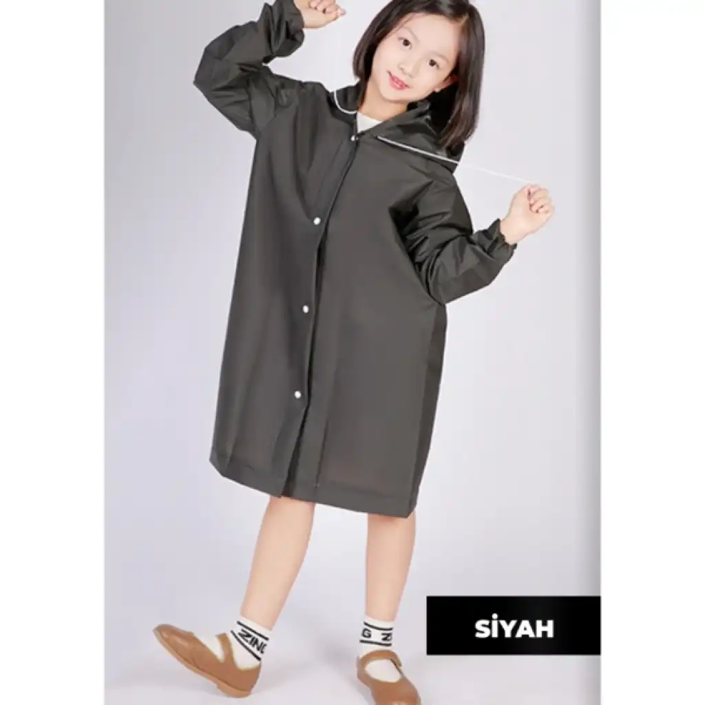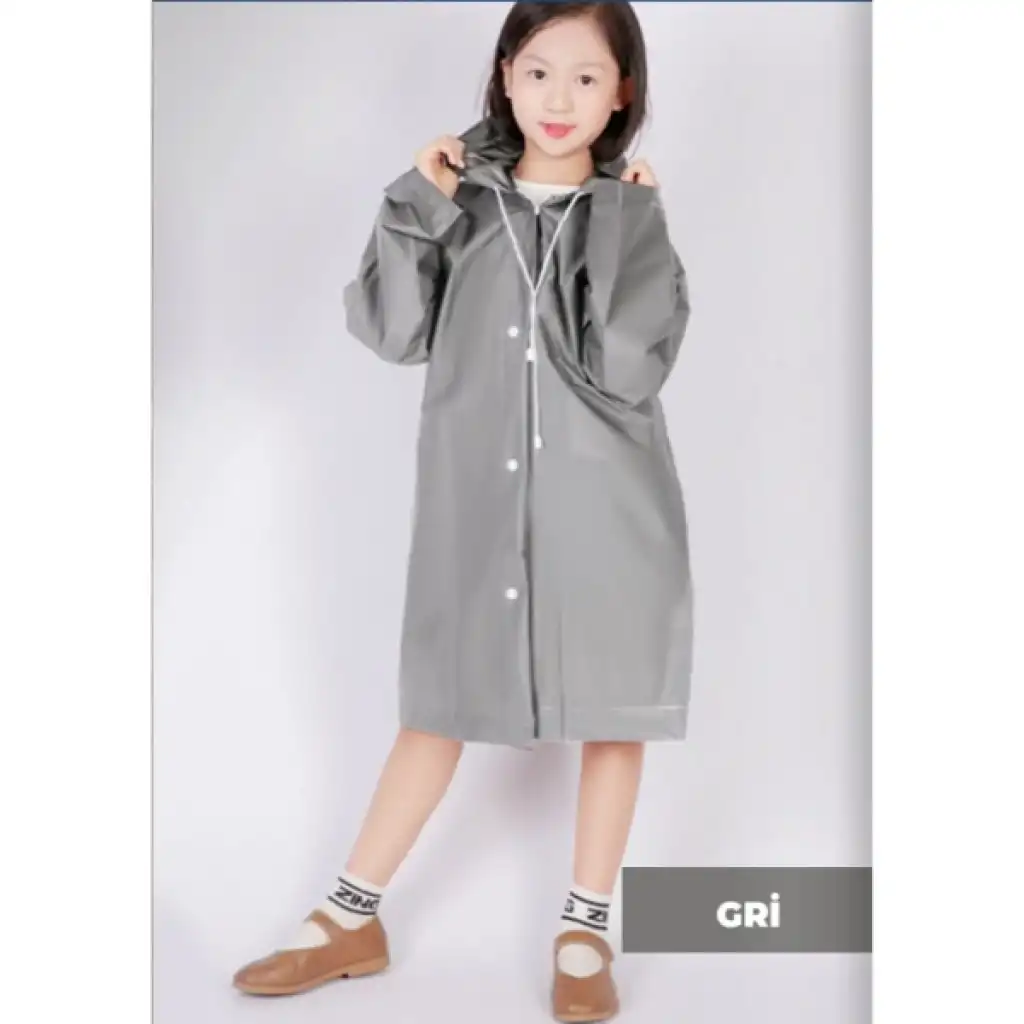 KAPÜŞONLU ÇOCUK YAĞMURLUKÜrün ÖzellikleriKapüşonlu çocuk yağmurluk, yağmurlu ve rüzgârlı havalarda çocukların konforunu ve korunmasını ön planda tutacak şekilde tasarlanmıştır. Su geçirmez EVA kumaştan üretilen yapısı sayesinde yağmur suyunu içeri almaz ve çocukların kuru kalmasına yardımcı olur. Hafif ve esnek dokusu, çocukların hareketlerini kısıtlamadan rahat bir kullanım sunar. Çıt çıt düğmeli ön kapama sistemi sayesinde kolayca giyilip çıkarılabilir, pratik yapısıyla ebeveynler için de kullanım kolaylığı sağlar. Kapüşonlu tasarımı baş ve boyun bölgesini rüzgâr ve yağmurdan korurken, günlük kullanımda rahat bir alternatif oluşturur. Standart beden olarak üretilmiştir ve farklı yaş gruplarındaki çocuklara uyum sağlayacak ölçülere sahiptir. Renk seçimi yapılamaz, ürün görsellerde yer alan renklerden 3e grup olarak gönderilir. Okulda, parkta, gezilerde ve günlük dış mekân aktivitelerinde çocuklar için uygun ve güvenilir bir yağmurluk seçeneğidir.Paket İçeriği1 adet kapüşonlu çocuk yağmurluk (standart beden, 3e grup renk)