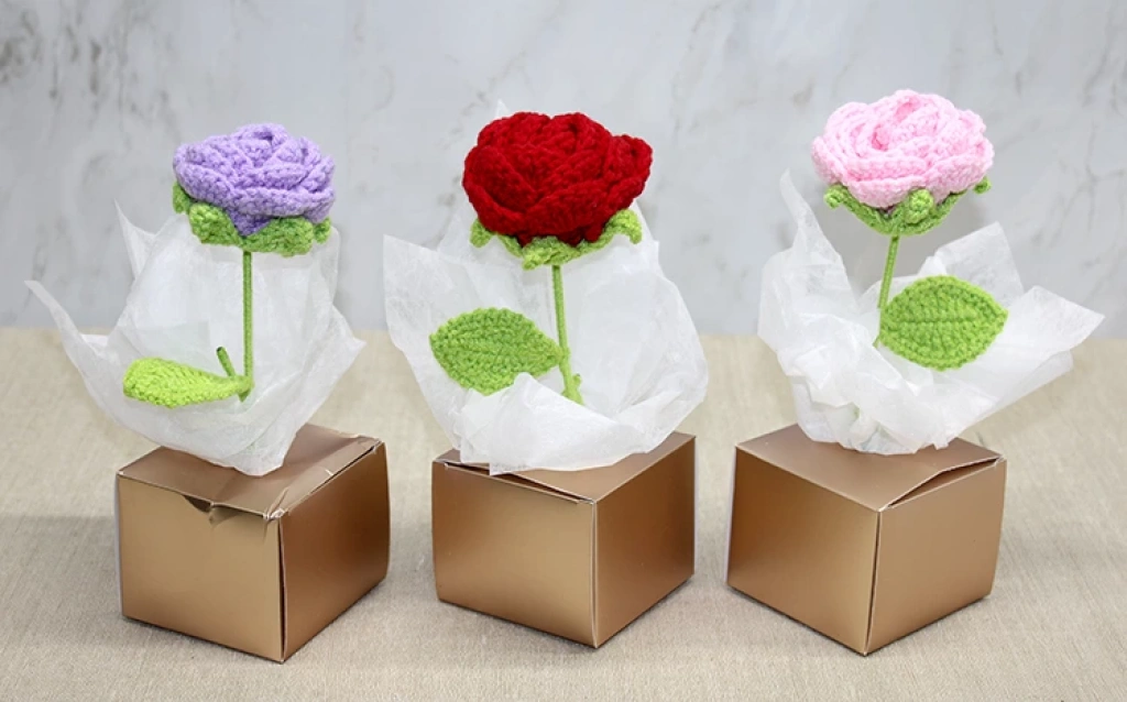 Kutulu Tekli El Örgüsü Gül Kutulu