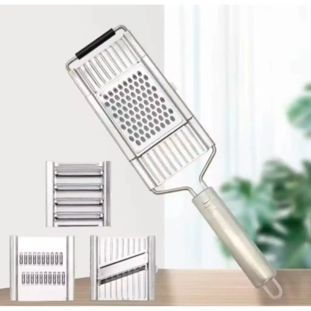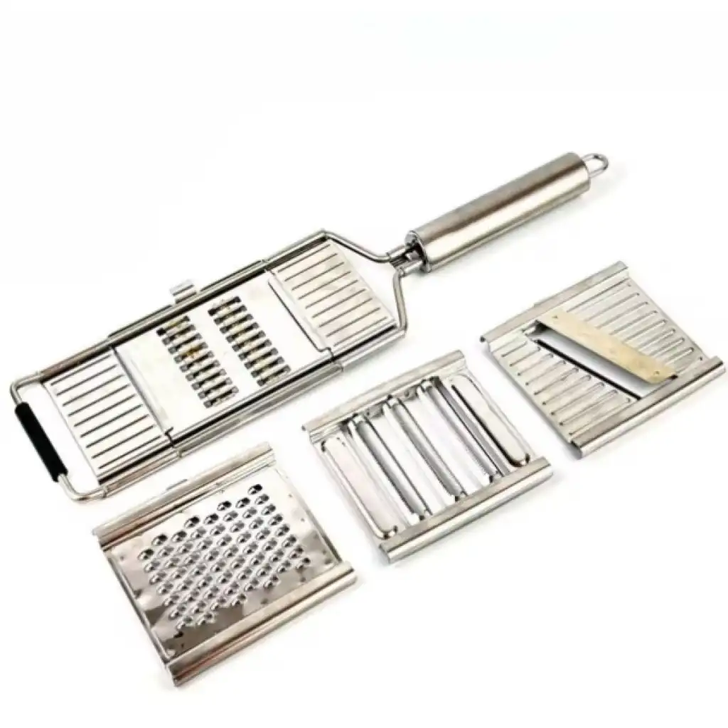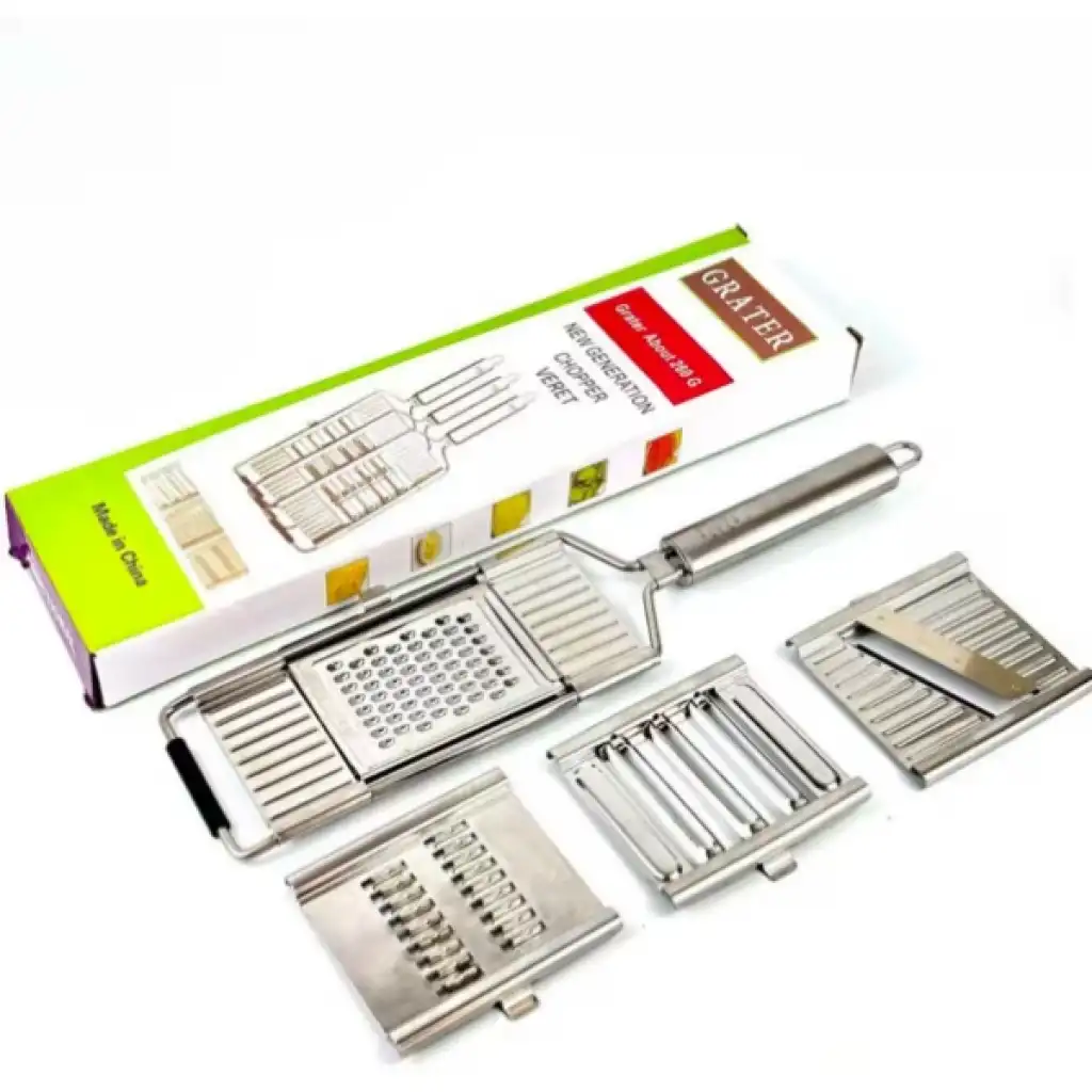 PASLANMAZ ÇELİK 4'LÜ SET EL RENDESİÜrün ÖzellikleriMutfakta zamandan tasarruf sağlayan paslanmaz çelik 4’lü set el rendesi, hem dayanıklı yapısı hem de çok yönlü kullanımı ile dikkat çeker. Yüksek kaliteli paslanmaz çelikten üretilmiş olması sayesinde uzun ömürlü kullanım sunar ve paslanmaya karşı dirençlidir. Ergonomik tutma sapı elden kaymayı önleyerek güvenli bir kullanım sağlar. Set içerisinde yer alan farklı başlıklar sayesinde sebze, meyve, peynir, havuç, salatalık gibi birçok ürünü kolayca dilimleyebilir, rendeleyebilir veya jülyen kesebilirsiniz. Pratik şekilde değiştirilebilen başlıklar, mutfakta ihtiyaca 3e grup hızlı çözümler sunar. Temizliği son derece kolay olan ürün, elde veya bulaşık makinesinde yıkanabilir. Hem profesyonel mutfaklar hem de ev kullanımı için idealdir.Paket İçeriği1 adet Paslanmaz Çelik 4'lü Set El Rendesi