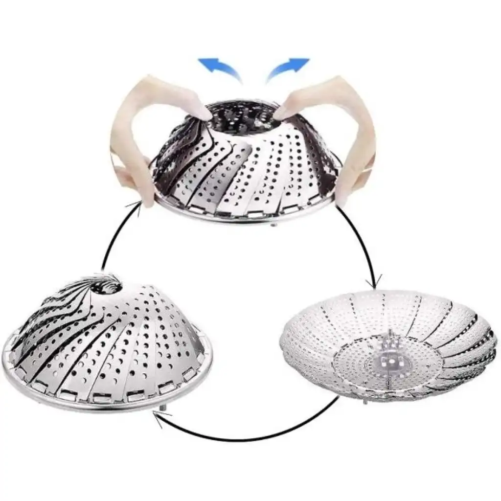 PASLANMAZ ÇELİK BUHARDA PİŞİRME SEPETİÜrün Özellikleri100% yepyeni ve yüksek kaliteYüksek kaliteli paslanmaz çelik, normal kullanım altında pas almazsınızBasınç ocakları, anlık tencere, tencere, vb. Için mükemmel olan tüm tencere boyutlarına genişler ve ayarlar.Pirinç, balık, köfte, meyve ve sebze, deniz ürünleri (Balık, yengeç, missels, istiridye) tatlılar, et ve tavuk, yumurta ve daha fazlası!Yemeğinizi buharlaştırarak, sadece tadını lezzetli hale getirmekle kalmazsınız, yemeklerinizin içerisinde besinleri %90  daha fazla saklarsınız! Bu yüzden sadece sıkıcı, sağlıksız yemeklere bağlı kalmayın. Tencere/tava ve basınçlı ocaklar için  çeşitli boyutlarda uyacak şekilde genişleyebilir, en sevdiğiniz tencereyi güvenli bir buharlı sepete dönüştürür. Renk: gümüşMalzeme: paslanmaz çelik Boyutu: Katlanmış boyutu: 14.2x3cmAçılmış boyutu: yükseklik: 5cm çapı: 21cmPaket İçeriği1 adet paslanmaz çelik buharda pişirme sepeti
