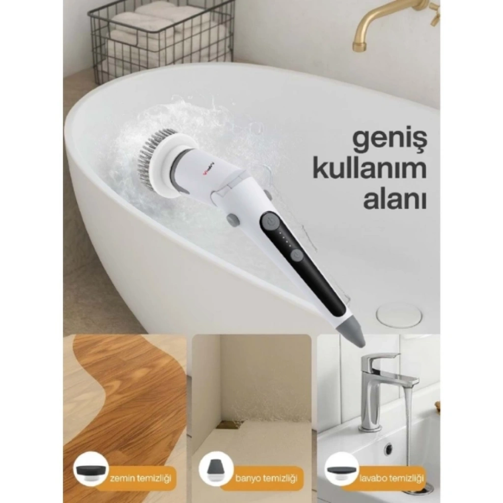 PORTATİF ŞARJLI TEMİZLEME FIRÇASIÜrün ÖzellikleriPortatif Şarjlı Temizleme Fırçası, ev temizliğini çok daha hızlı ve zahmetsiz bir hale getirmek için tasarlanmış yeni nesil pratik bir temizlik cihazıdır. 2500 mAh güçlü bataryası sayesinde kablosuz kullanım özgürlüğü sunar ve Type-C şarj girişiyle kısa sürede şarj edilebilir. 45 dakikalık çalışma süresi ile geniş alanları tek şarjla temizleyebilir.Ürün, ayarlanabilir teleskopik sap yapısıyla yüksek veya alçak yüzeylere erişmeyi kolaylaştırırken, 2 farklı hız seviyesi sayesinde kirin yoğunluğuna 3e grup temizlik gücü ayarlanabilir. 90° / 135° / 180° dönebilen başlık mekanizması, dar alanlarda ve köşelerde yüksek manevra kabiliyeti sağlar.13 farklı temizlik başlığı ile banyodan mutfağa, derz aralarından zemin yüzeylerine, camdan paslanmaz çeliğe kadar tüm yüzeylerde etkili temizlik sunar. Bütün başlıklar suya dayanıklı yapıda olup kolayca takılıp çıkarılabilir. Çok yönlü kullanım imkânı sayesinde günlük temizlik rutininizi hızlandırır ve daha hijyenik bir sonuç elde etmenizi sağlar.Paket İçeriği1 Adet Portatif Şarjlı Temizleme Fırçası13 Adet Farklı Temizlik Başlığı1 Adet Type-C Şarj Kablosu1 Adet Büzgülü Hediye File