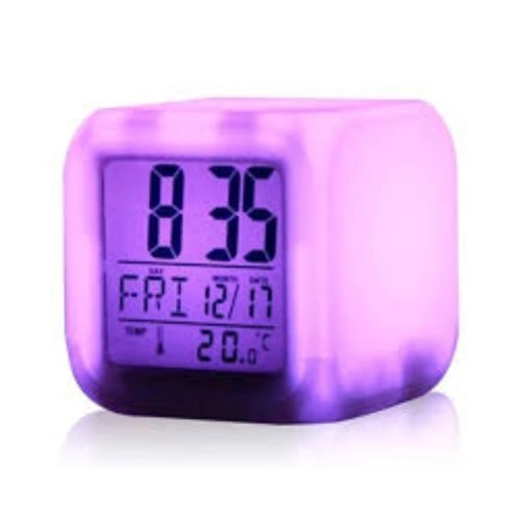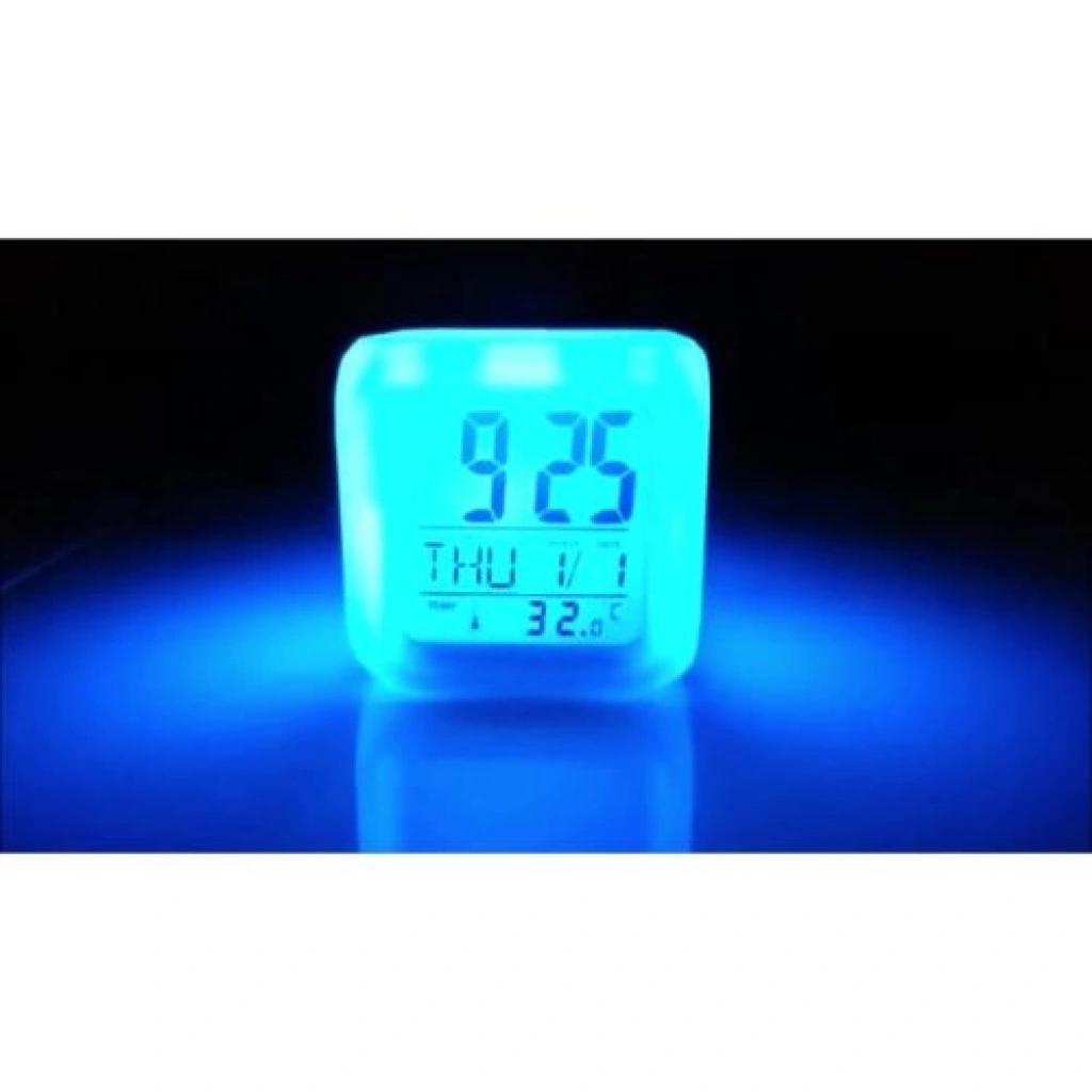 RENK DEĞİŞTİREN KÜP SAAT  Etrafına verdiği ışık ve rengi gördükten sonra sıradakirenge geçmesi için sizin de sabırsızlıkla bekleyeceğiniz şüphesiz. Gece saati görmek için dokunmanız yeterli. Tüm gövdesi ve ekranı ile birlikte renk değiştirmektedir.  Işığını yakmadan da kullanabilirsiniz.  Ürün Özellikleri Renk Değiştirebilen Masa Saati + Termometre + Alarm İsterseniz 7 farklı rengi sürekli değiştirebilen çok hoş birgece lambası! İsterseniz İki farklı seçenekte renk değiştirebilen masasaati! Sürekli olarak renk değiştirir ya da dilerseniz sadecedokunduğunuzda! Gece saatinizi görmek için dokunmanız yeterli! Tüm gövdesi ve ekranı ile birlikte renk değiştirmektedir! Işığını yakmadan da kullanılabilir! 4 adet ince kalem pil (AAA) ile çalışır. (Piller paketedahil değildir)   Paket İçeriği  1 Adet Renk Değiştiren Küp Saat