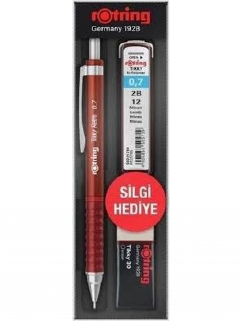 3E Grup - Rotring Tikky Retro Set 0.7 Versatil+min+silgi Kırmızı Ro-rk07