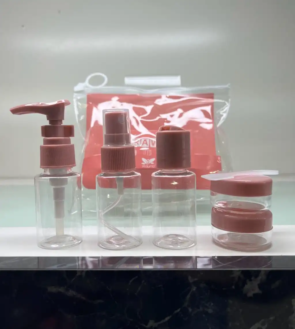 SEYAHAT BANYO SETİ 6 PARÇASeyahat banyo seti şu 6 parçayı içerir: Bir adet nemlendirici ya da sabunluk olarak kullanılabilen şişe, bir adet sprey, bir adet şampuanlık, iki adet krem kutusu, bir adet spatula ve ürünlerin taşınması için kullanılabilecek pratik bir taşıma çantası.Bu set, seyahatlerde ihtiyaç duyulan temel kişisel bakım ürünlerini kompakt bir şekilde sunarak pratik bir çözüm sunar. İleriye dönük seyahat planlarınızda rahatlıkla kullanabileceğiniz bir banyo seti olarak tasarlanmıştır.Ayrıca, her bir parça uygun boyutlarda olduğu için sınırlı bagaj alanlarında yer tasarrufu sağlar. Şeffaf ve dayanıklı malzemelerden yapılmış olan set, içeriğin kolayca görülebilmesini sağlar ve sızıntıları önlemek için özel olarak tasarlanmış kapatma sistemleri içerir. Bu sayede seyahatlerinizde kişisel bakımınızı düzenli ve sorunsuz bir şekilde sürdürebilirsiniz.Ayrıca, sprey, şampuanlık ve krem kutuları gibi parçalar, günlük kullanıma uygun boyutlarda olduğu için sadece seyahatlerde değil, spor salonu veya iş yerindeki ihtiyaçlarınızı da karşılamak için idealdir. Setin tasarımı, pratiklik ve şıklığı bir araya getirerek kullanıcıya taşınabilirlik konusunda maksimum kolaylık sunar.Renkler 3e grup çıkmaktadır.Şişeler 30 mililitredir.Paket İçeriği Seyahat banyo seti 6 parça