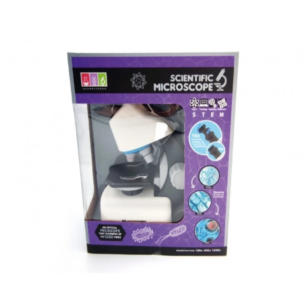 STEM MİKROSKOP SETİÜrün ÖzellikleriSTEM mikroskop seti, bilimsel çalışmalara ilgi duyan çocuklar ve öğrenciler için geliştirilmiş profesyonel bir settir. 10X ve 20X göz merceği ile birlikte 4X, 10X ve 40X objektif lenslere sahiptir. Bu kombinasyon sayesinde 40X’ten 1200X’e kadar büyütme imkânı sunarak hücre, mikroorganizma ve küçük objelerin detaylı incelenmesini sağlar. 16.3x10x21.8 cm boyutlarındaki kompakt tasarımı sayesinde hem sınıf ortamında hem de evde kolaylıkla kullanılabilir. LED aydınlatma sistemi sayesinde net ve parlak görüntüler elde edilir. 2 adet AA pil ile çalışan cihaz, kolay taşınabilir yapısıyla eğitim ve hobi amaçlı kullanım için uygundur.Paket İçeriği1 adet Stem Mikroskop Seti
