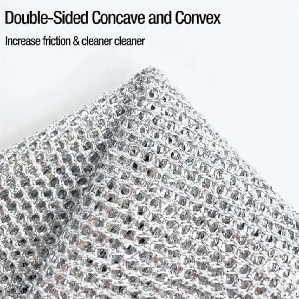 TENCERE TAVA OVMA BEZİ- Malzeme: Naylon- Renk: Alüminyum rengi- Boyut: 20 cm x 20 cm- Kullanım Alanları: Tencere, tava ve zorlu bulaşıkların temizliği için ideal- Özellikler: Çizik yapmaz, çok yönlü kullanım- Uygulama Alanları: Tezgahlar, gümüş eşyalar, fayanslar, yağlı ve kirli yüzeyler için uygundur.Bu tencere tava bulaşık bezi, naylon malzemesi ve özel tasarımıyla çizik yapmadan zorlu bulaşıkların temizliğine yardımcı olur. Alüminyum rengi görünümüyle şık bir görünüme sahiptir. 20 cm x 20 cm boyutlarıyla elinize rahatça oturur ve kullanımı kolaydır. Çeşitli yüzeylerde kullanılabilen bu bez, tezgahlar, gümüş eşyalar, fayanslar ve yağlı/kirli yüzeyler için idealdir.Paket İçeriği1 adet tencere tava ovma bezi