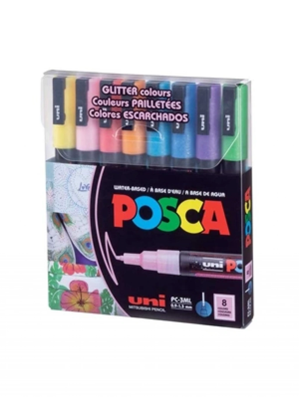 3E Grup - Uni Posca 0.9-1.3 Su Bazlı Markör Kalem Simli 8"li Pc-3ml 8c
