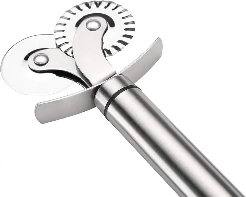 ÇİFT BAŞLIKLI PİZZA HAMUR BIÇAĞIÇift başlıklı pizza ve hamur bıçağı, mutfakta pratik kesim sağlayan özel bir tasarıma sahiptir. Paslanmaz çelik malzemesi, uzun ömürlü kullanım ve keskin bir performans sunar. İki farklı bıçak başlığı, pizza dilimleme ve hamur kesimini kolaylaştırarak çok yönlü bir kullanım sağlar.Duvara asılabilir tasarımı, mutfak düzeninizi korumanızı sağlar ve bıçağın kolay erişilebilir olmasını sağlar. Bıçağın her iki ucu da kesici özelliklere sahiptir, böylece farklı kesim ihtiyaçlarına uyum sağlar.Dayanıklı ve sağlam yapısıyla bu çift başlıklı pizza ve hamur bıçağı, mutfakta pratiklik ve işlevselliği bir araya getirir. Keskin kenarları ve paslanmaz çelik malzemesiyle uzun süreli kullanım için ideal bir mutfak aracıdır. İçeriği çift başlıklı pizza hamur bıçağı