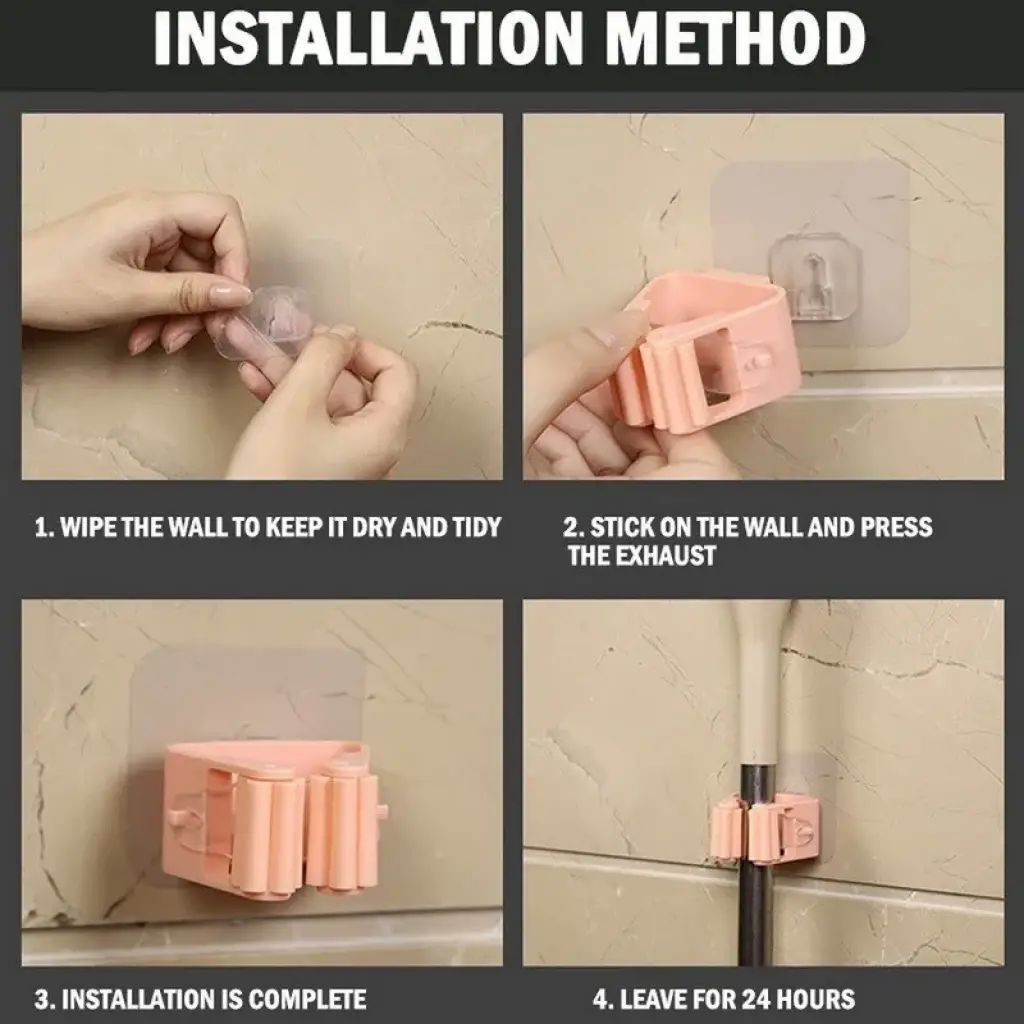 DUVARA MONTE MOP PASPAS TUTUCU Duvara monte mop ve paspas tutucu, dayanıklı plastik malzemeden üretilmiştir. Ürün, arkasındaki yapışkanlı kısım sayesinde kolayca duvara sabitlenebilir. İçerisinde bulunan yuva, paspas ya da mopları tutmak için özel olarak tasarlanmıştır ve bu sayede temizlik malzemeleriniz düzenli bir şekilde saklanabilir.Yapışkanlı kısım, montaj işlemini basitleştirir ve ürünü istediğiniz yüzeye sağlam bir şekilde yerleştirmenize yardımcı olur. Plastik malzeme, ürüne dayanıklılık kazandırırken, paspas veya mopları sabitleme işlevi, kullanım sırasında düzenli ve erişilebilir tutulmalarını sağlar. Bu pratik ürün, temizlik malzemelerinizi organize etmek ve depolamak için ideal bir çözüm sunar. İçeriği4 duvara monte mop ve paspas tutucu