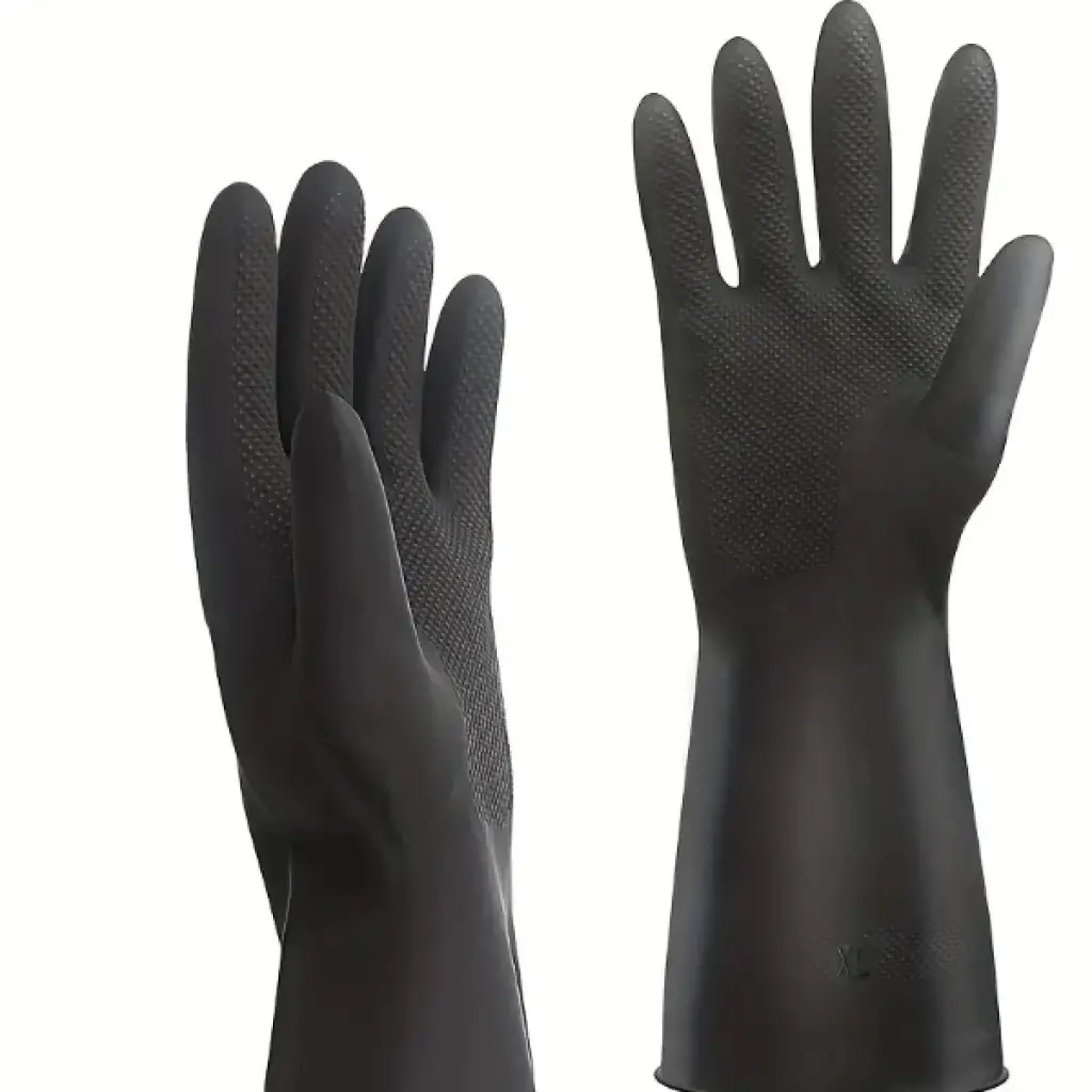 SİYAH RENKLİ ENDÜSTRİYEL ELDİVENSiyah renkli endüstriyel eldiven, üç katmanlı organik lateks malzemeden üretilmiştir ve organik pamuk pudralı astarı sayesinde ellerinizi terletmeden konforlu bir kullanım sunar. Kalın, esnek, yumuşak ve hassas yapısı ile elinizi tam olarak kavrayarak uzun süreli çalışmalarda dahi rahatlık sağlar. Dayanıklı yapısı sayesinde yıpranmaya karşı dirençlidir ve endüstriyel alanlarda güvenli bir kullanım sunar. İnşaat şantiyeleri, bahçıvanlık, tarım, üretim, hayvancılık, temizlik, hijyen ve genel kullanım gibi pek çok farklı alanda kullanılabilir. Çok yönlü yapısı ile pratik bir koruyucu çözüm sunan eldiven, kullanıldıktan sonra ılık su ile yıkanıp havlu ile durulanarak tekrar kullanılabilir. çift siyah renkli endüstriyel eldiven