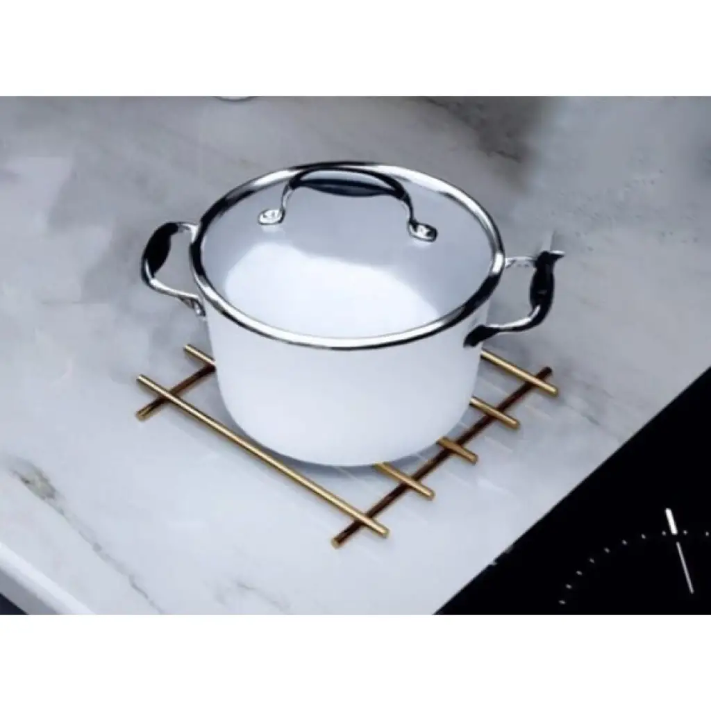 YANMAZ PASLANMAZ ÇELİK NİHALE GOLD RENK Şık gold rengi ve dayanıklı paslanmaz çelik malzemesi ile üretilen bu yanmaz nihale, mutfaklarda hem estetik hem de işlevsel bir çözüm sunar. 20x20 cm ölçülerindeki kare formu sayesinde geniş tencere ve tavalar için yeterli alan sağlar. Yüksek ısıya dayanıklı yapısıyla sıcak mutfak ekipmanlarını doğrudan tezgaha koymadan önce güvenle kullanabilirsiniz. Kaymaz silikon ayakları sayesinde tezgah yüzeyini korur ve kaymaları önler. Modern ve zarif görünümüyle mutfağınıza zarafet katar. Hem günlük kullanımda hem de misafir ağırlarken pratiklik sağlar. Adet Yanmaz Paslanmaz Çelik Nihale Gold Renk