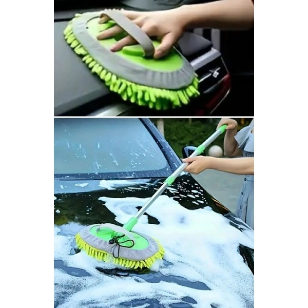 YEDEK BEZLİ MİKROFİBER ARABA YIKAMA FIRÇASIÜrün ÖzellikleriYedek bezli mikrofiber araba yıkama fırçası, araç temizliğinde maksimum verim ve kolaylık sunar. Uzun ve hafif teleskopik sapı sayesinde 1,60 metreye kadar uzayabilir, böylece yüksek veya geniş araç yüzeylerine erişim sağlar. 2’si 1 arada tasarımıyla öne çıkan fırça başlığı, şönil yüzeyden ayrılarak eldiven gibi kullanılabilir. Bu özellik, hem geniş hem de dar alanlarda detaylı temizlik yapılmasını mümkün kılar. 180 derece dönebilen esnek başlığı, farklı açılarda kullanım imkânı sunarak pratik bir deneyim sağlar. Mikrofiber yapısı toz, kir ve suyu etkili şekilde toplar, çizik bırakmaz ve yüzeyde iz bırakmaz. Araba kaportası, cam yüzeyler, jantlar veya evde cam, balkon gibi yüzeylerin temizliği için de uygundur. Ürün, yıkanabilir ve tekrar kullanılabilir bez yapısıyla uzun ömürlü kullanım sunar.Paket İçeriği1 Adet Mikrofiber Araba Yıkama Fırçası (Teleskopik sap + başlık)1 Adet Yedek Mikrofiber Bez
